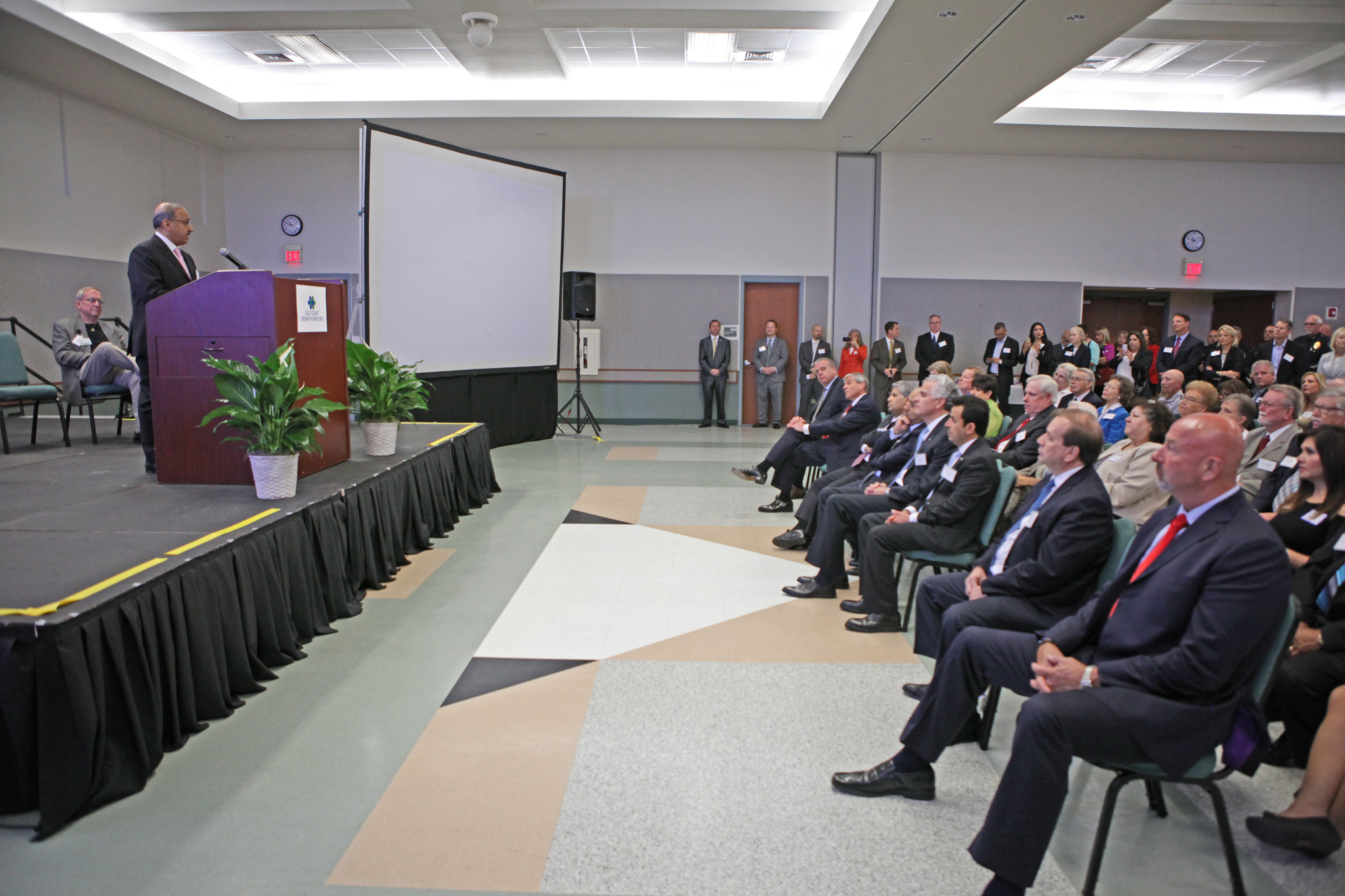 Yousef Abdullah Al-Benyan, Consejero Delegado de SABIC, se dirige a los asistentes al anuncio de selección del emplazamiento de ExxonMobil SABIC.