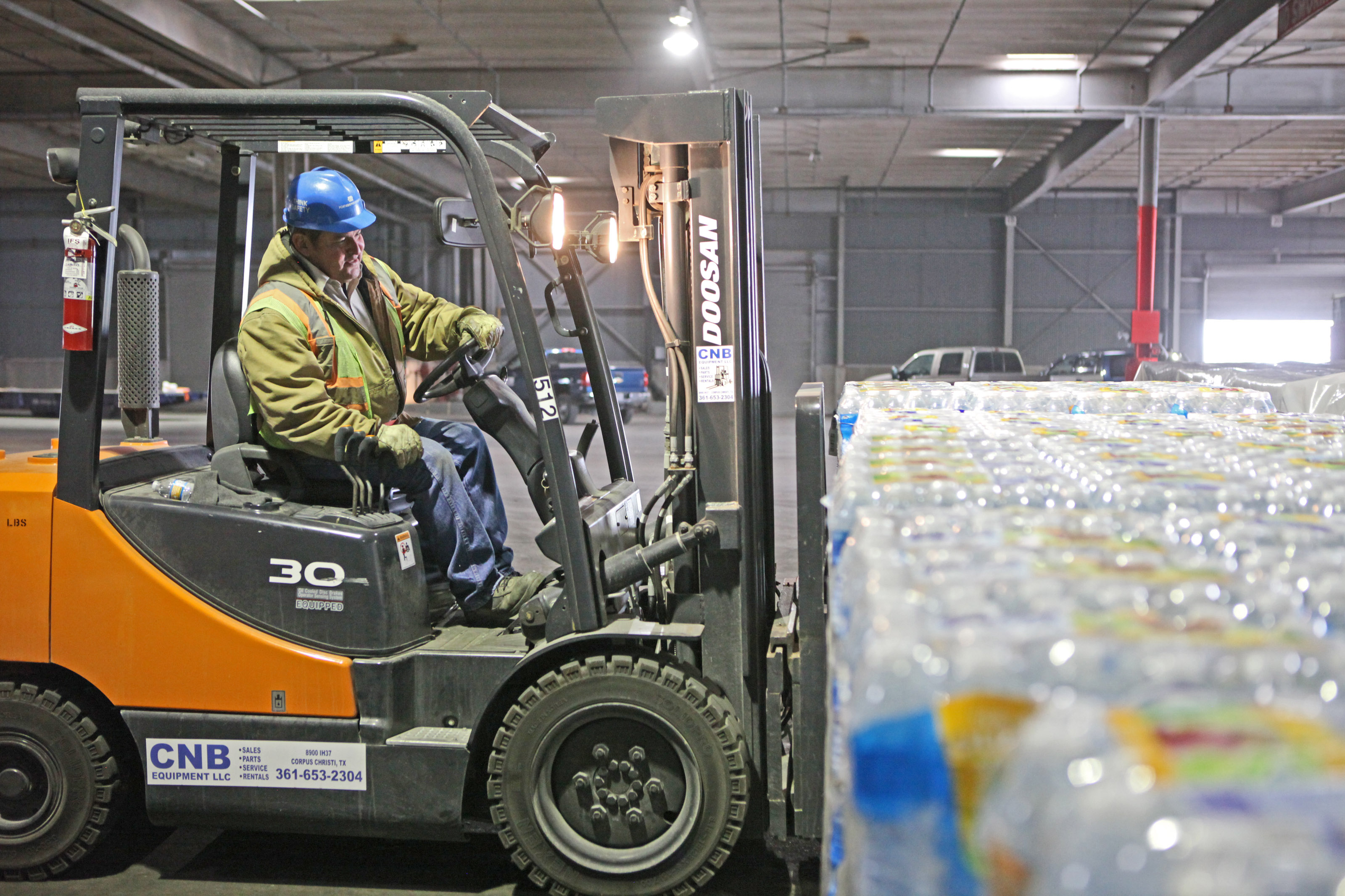With many pallets of bottled water remaining in Port of Corpus Christi warehousing since a recent water issue in the City of Corpus Christi, the port is assisting in the distribution of water to the citizens of Beeville.  Through cooperation between the Cities of Beeville and Corpus Christi, and the Port of Corpus Christi, City of Beeville representatives are set to acquire several pallets of water from storage at the port to distribute to their fellow citizens.